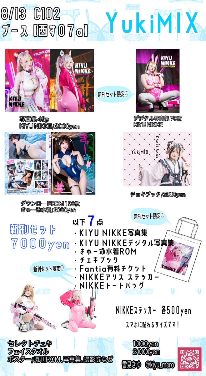 C102 お品書き❣️ 8月13日(日)コミケ2日目 \西す07a/ 新刊 競泳水着ROM(動画付き)と NIKKEの写真集! その他グッズも!(՞ ܸ. .ܸ՞)︎♡ 詳しいサンプルはリプから👇
