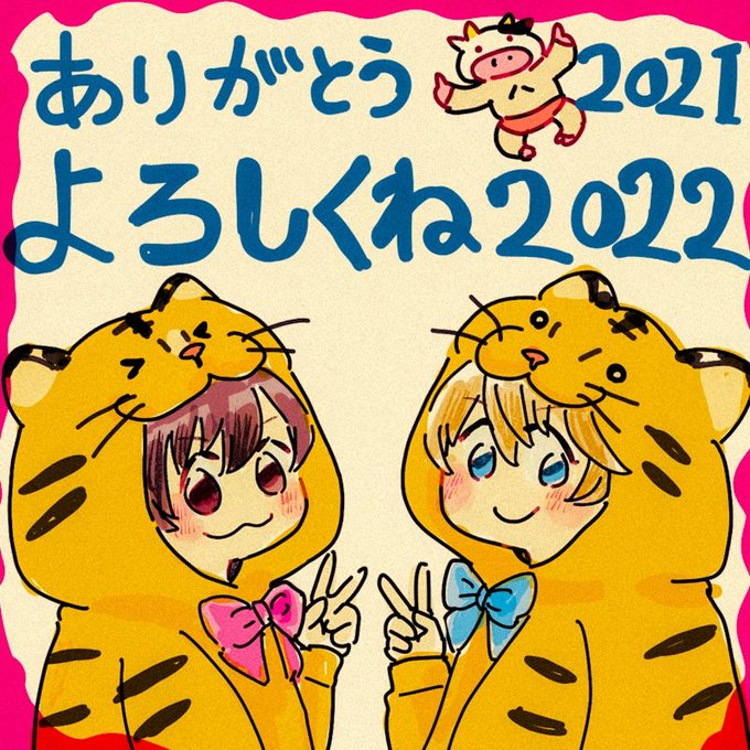 7 57 2021年最後のあすかなの日〜🐮 ちょっとだけ気が早いですが🐯🐯 #あすかなアート 21/12/31 23:34