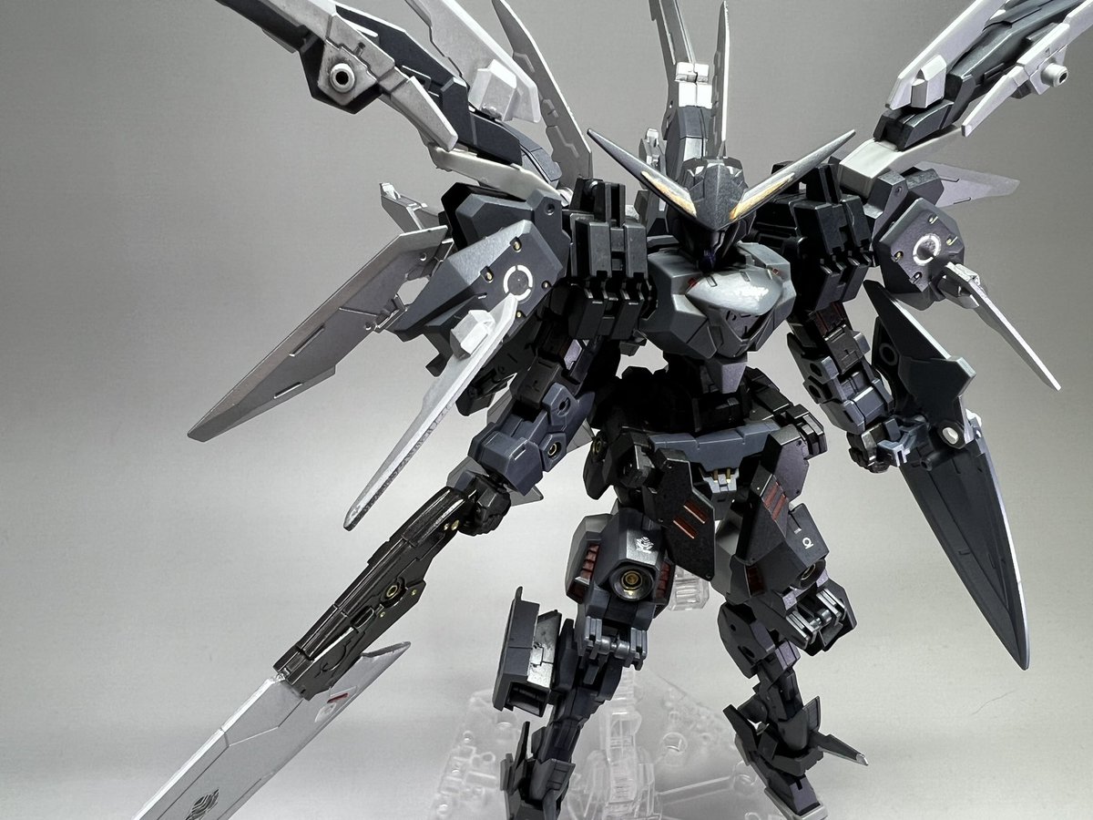 【ブレイドミネーター】 地球連合軍の近接特化機。宇宙空間での高速戦闘を可能とするアクィラウィングユニットを装備している。機体名はブレイド(剣)とドミネーター(支配者)を組み合わせた造語。全身の無数の刃は量産機程度なら接触しただけでも葬る切れ味を持つ。 #30MM宇宙戦 #30MM地球連合軍