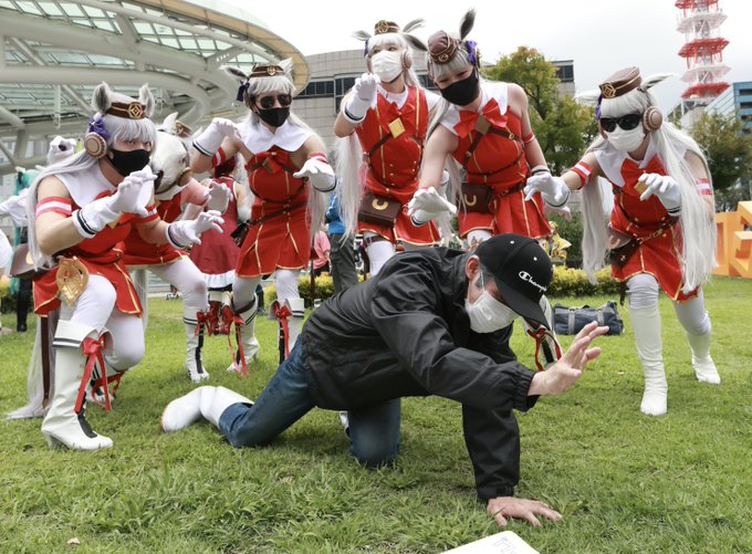 今浪さん待ちやがれ!!! 〜からのChoo Choo TRAIN!! 📷 @bata127_k 今浪厩務員 @hansyu728 ゴールドシップ @hardmozaiku @Yukino_cos039 @mgr1911 @cos_tai8ki @kiyuryo1 #コスサミ #コスサミ2022 #WCS2022