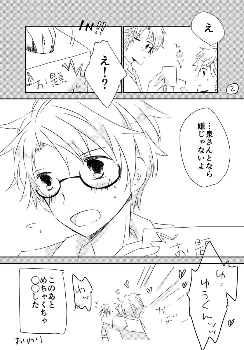 13 34 まだ終わってないけど多分でるので、ブリデいずまこプチ合わせの新刊サンプルです!!! 八方ふさぎ(いずまこ) A5/24P/値段未定 タイトル通りというか、煮え切らないゆうくんに痺れを切らした瀬名が退路を塞ぐ話です サンプル1 22/12/13 19:04