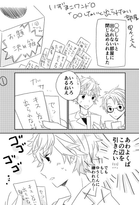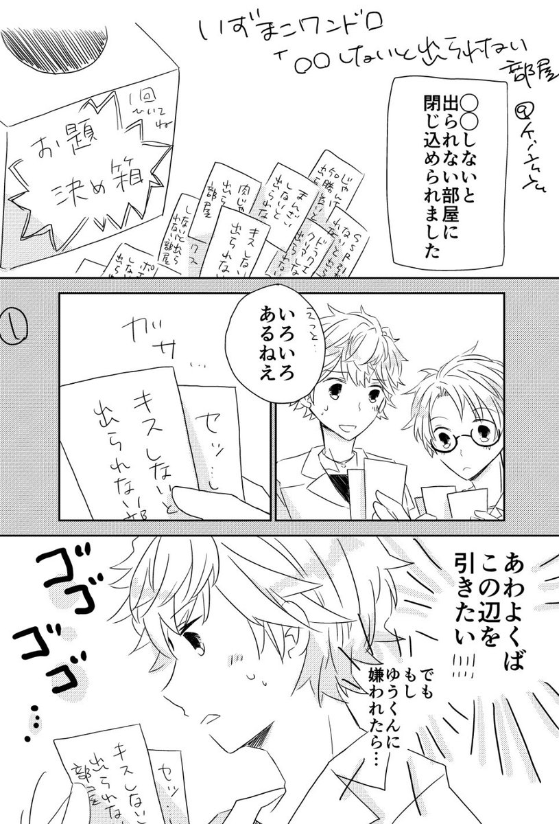 「◯◯しないと出られない部屋」でおじゃまします +2hくらい #いずまこ版深夜のお絵描き文字書き一本勝負 @izmk_60 ゆうくんが何選んで箱に入れたのかはご自由に