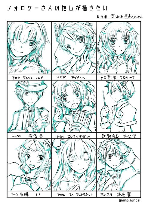 #フォロワーさんの推しが描きたい ペン入れるレイヤー間違えたせいで線画残っててすみません 普段描かない子ばかりで楽しかったです ありがとうございました!またやりたい〜