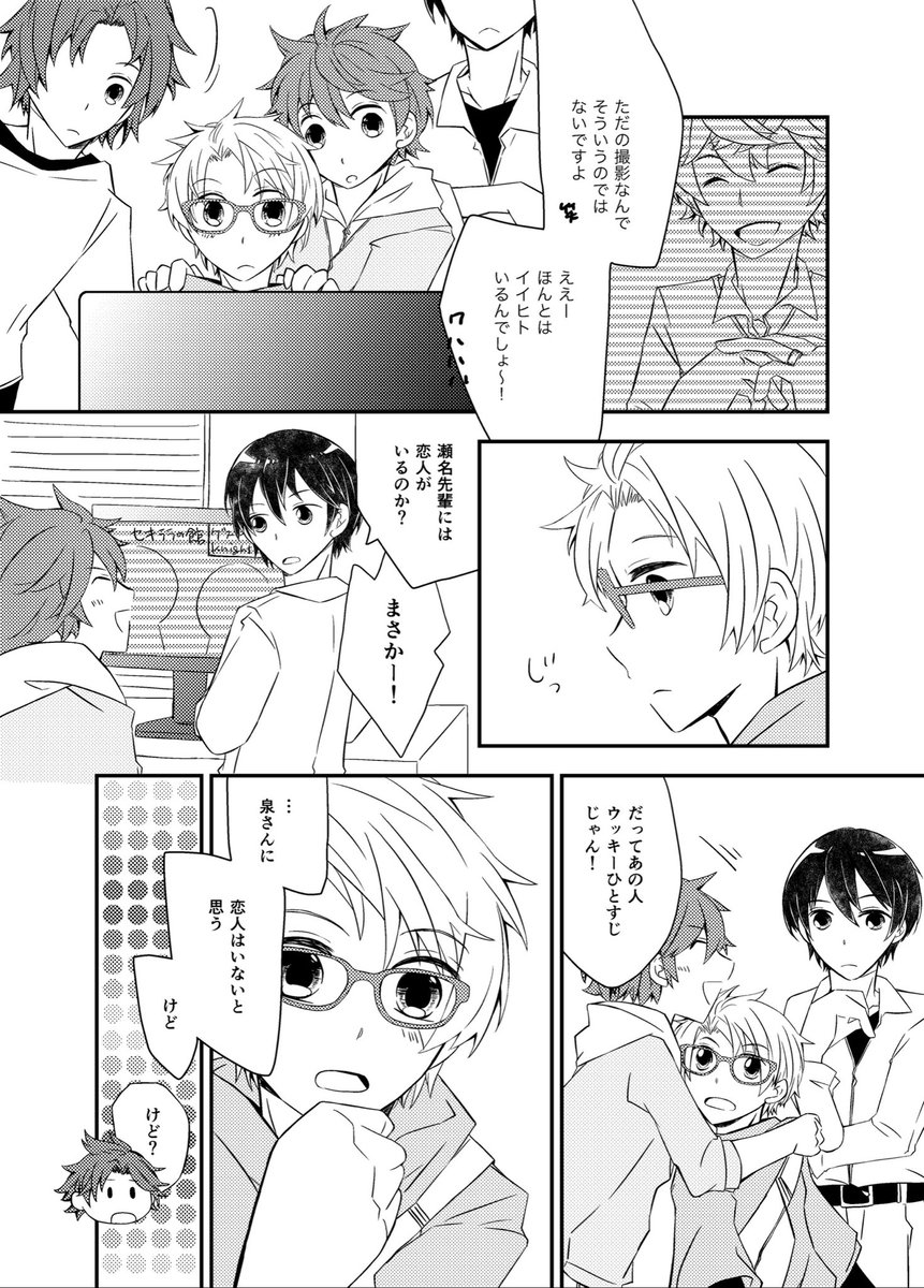 4 9 【10/16ブリデ新刊サンプル】 ※昔描いた話のセルフリメイクです(前の本持ってるひといたらごめんね!) 写真にまつわる話 いずまこというより、ゆうくんと泉とトリスタっぽいですがいずまこです。いずまこです!サンプルの通りちょっとだけキズモ時代捏造してます A5/20p/¥300 22/10/13 22:13