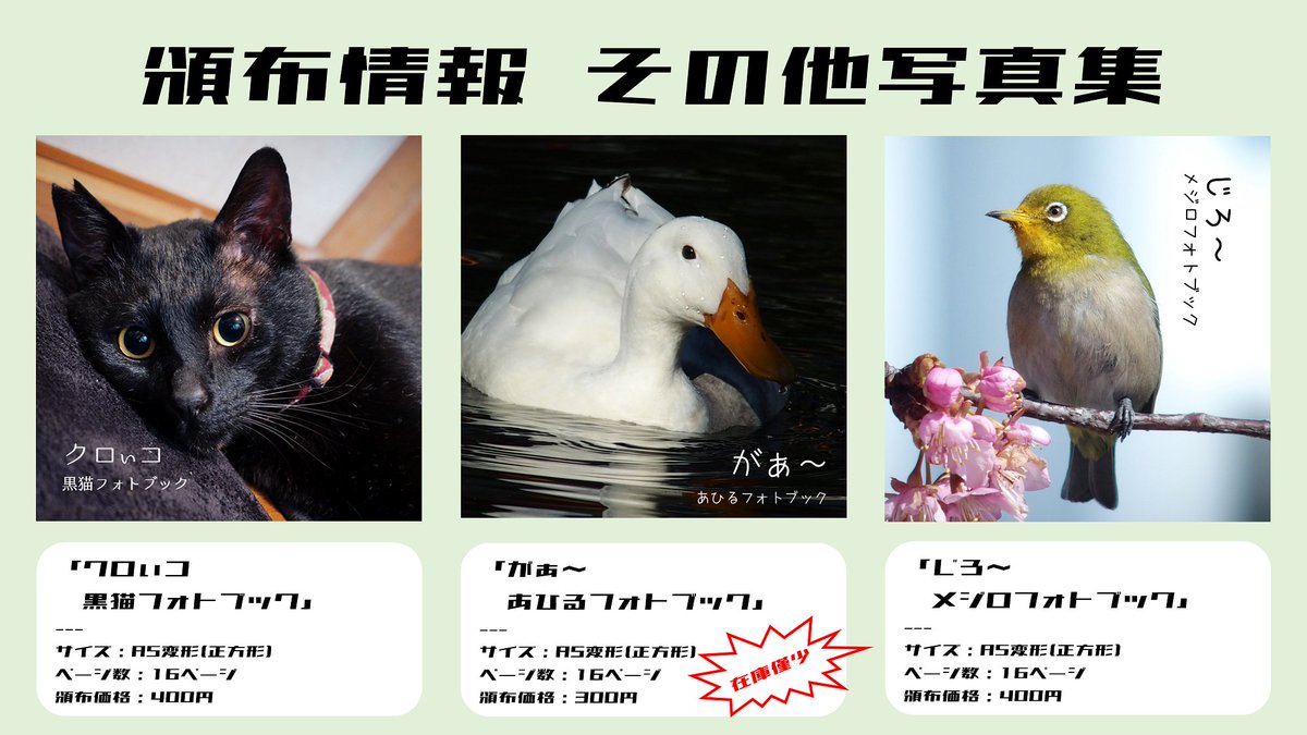 ■C102のお知らせ スズメ、ヒヨドリなどの野鳥や宙玉の写真集を頒布します。頒布物については添付画像をご参照ください。 ●サークル情報 8月13日(日) 東Y31a 「宙猫庵」 webcatalog.circle.ms/Perma/Circle/1… ●スペース配置場所 webcatalog.circle.ms/Circle/Map/173… #C102WebCatalog #C102 #ちゅん活 #スズメ