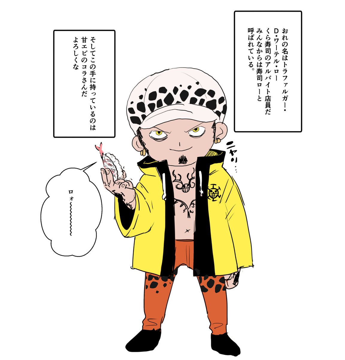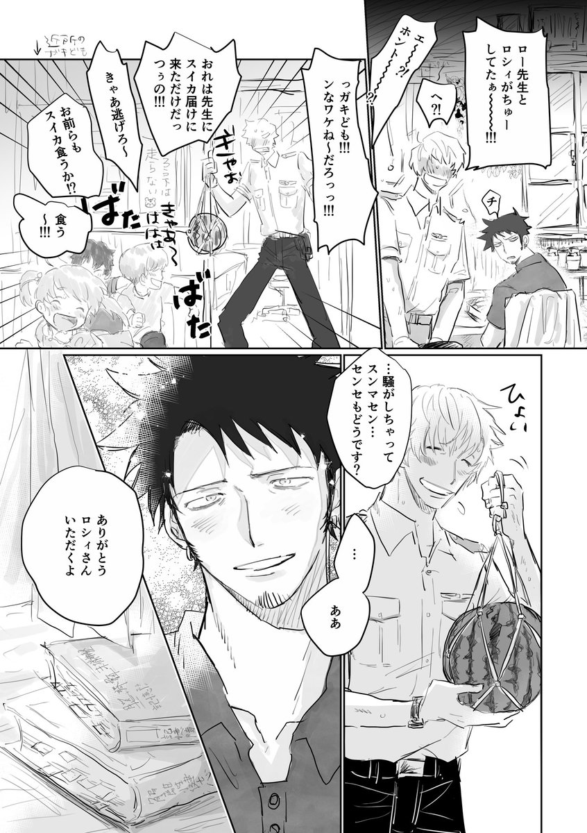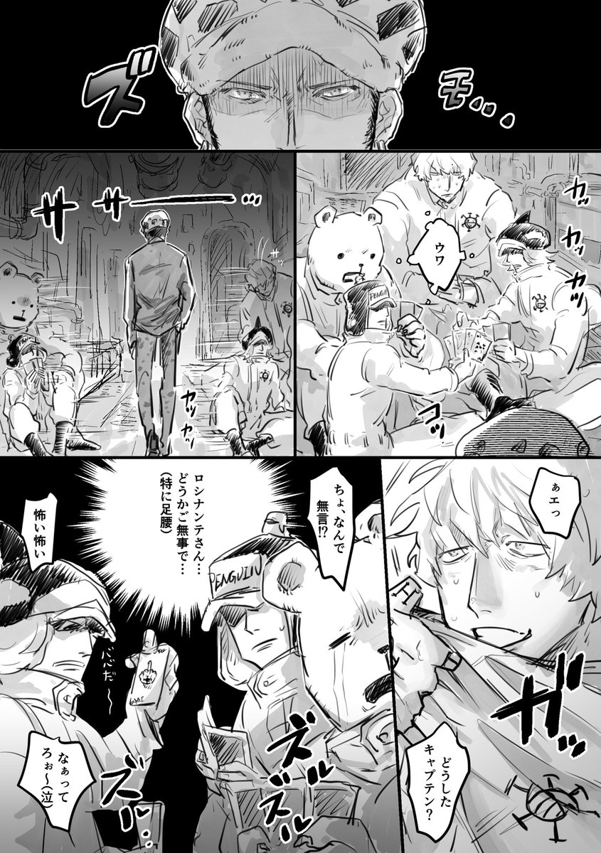 これは外にスモやんがいるのに気付かずアホの子ムーブするルフィさんとローさんとハンスくんがスモやん認知した瞬間にびっくりしてる4コマ