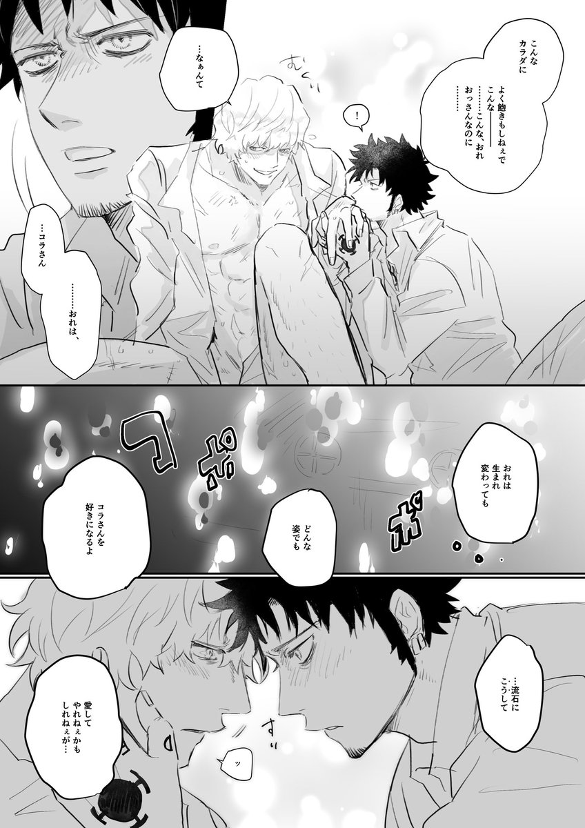 245 2091 リクエストで頂いた “熱い部屋でドロドロになりつつもイチャつくローコラ“ です ⚠️❤️🔥生存、💛🏴☠️加入if 23/05/28 22:25