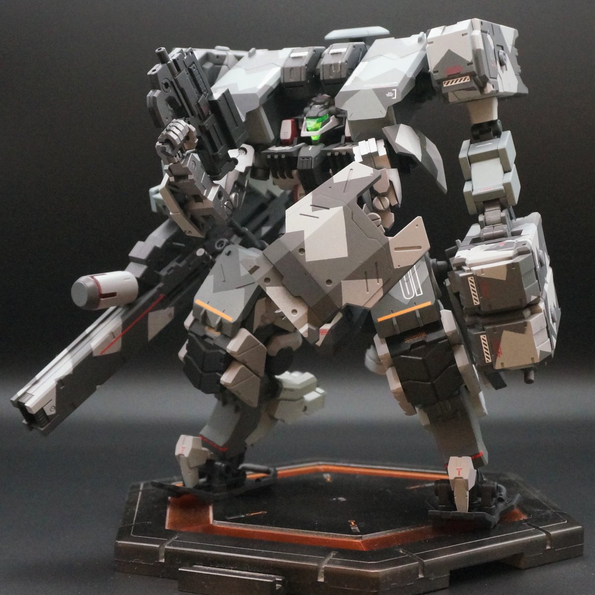 完成しました SFアーミーその4 命名「カレンデュラ」 以前作ったのと同部隊「アンテミオン」所属の設定 主な装備はクリスベクターと背中の大型ガウスハンマー 突撃して背中のガウスハンマーでぶん殴るのが主な戦闘スタイルな設定です #メガミデバイス #メガミ_G