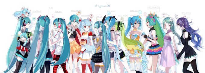 色んな世代のミクモジュちゃんとミクコスちゃんで久しぶりのお絵描き☺️みんなかわいいよ〜〜😊