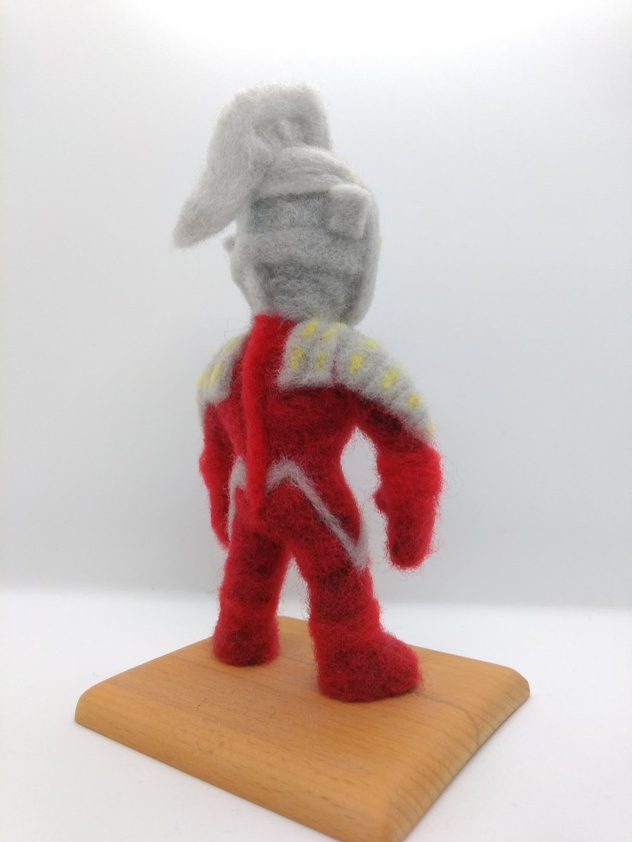 今週のニセ・ウルトラセブンさん。とりあえず自立するように。腕は肩幅を広くしたり、拳を握り手っぽくしたりでバランスの調整中。アイスラッガーもちょっと修正してます。プロテクター?を作り直したらセブン本体の修正は完了です! #羊毛フェルト #ウルトラセブン