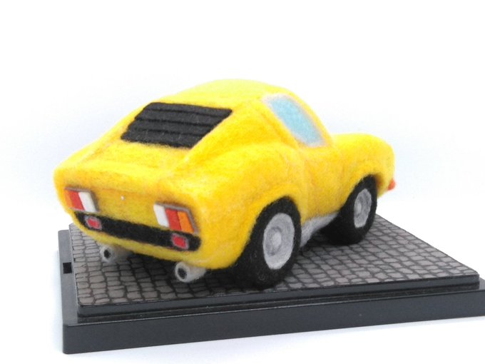13 75 【完成】もこもこミウラさん。 最後はマフラーやホイールの中央部などを付けて完成です! ベースは以前作ったもので、100均のコレクションケースに情景シート?みたいなものを貼ってます。 ↓に別アングルの画像おいておきます。 #羊毛フェルト #ランボルギーニ 22/09/29 17:51