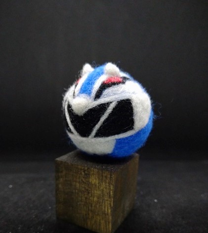 8 21 今回はキュウレンジャーのオオカミブルー。 ほんとは尖った耳がついています。 後ろ姿がかわいい❣️ ちょっとオオカミのデザイン大きすぎたー😱 顔の模様、オオカミ🐺に見えます?大きすぎて見えないですよね😭 過去作と3ショット。 #羊毛フェルト #キュウレンジャー #まんまるヘッド 23/04/11 19:05