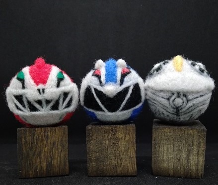 今回はハリケンジャーのハリケンブルー。 額の模様、多分イルカ🐬なんですけど。。。 わかります?ちょっとわからんすね🥴 過去作と3ショット。 シュシュっというよりは、ころころ転がって参上。 丸いってやっぱり好き🥰 #羊毛フェルト #スーパー戦隊 #ハリケンジャー #まんまるヘッド