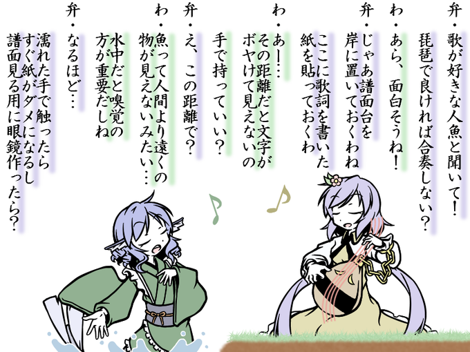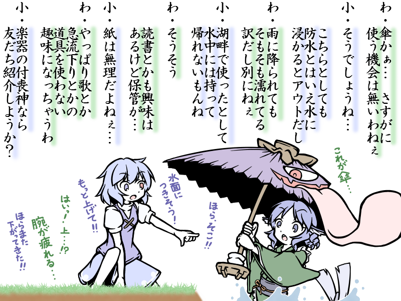 #9月19日は九十九姉妹の日 去年のまとめツイートへの皆さんのRTといいね通知で思い出せました ありがとうございます ということで昨年の井戸端譚から九十九姉妹詰め合わせ 作画的にはわかさぎ姫回が納得の仕上がり ネタ的には衣玖さん回がお気に入りです