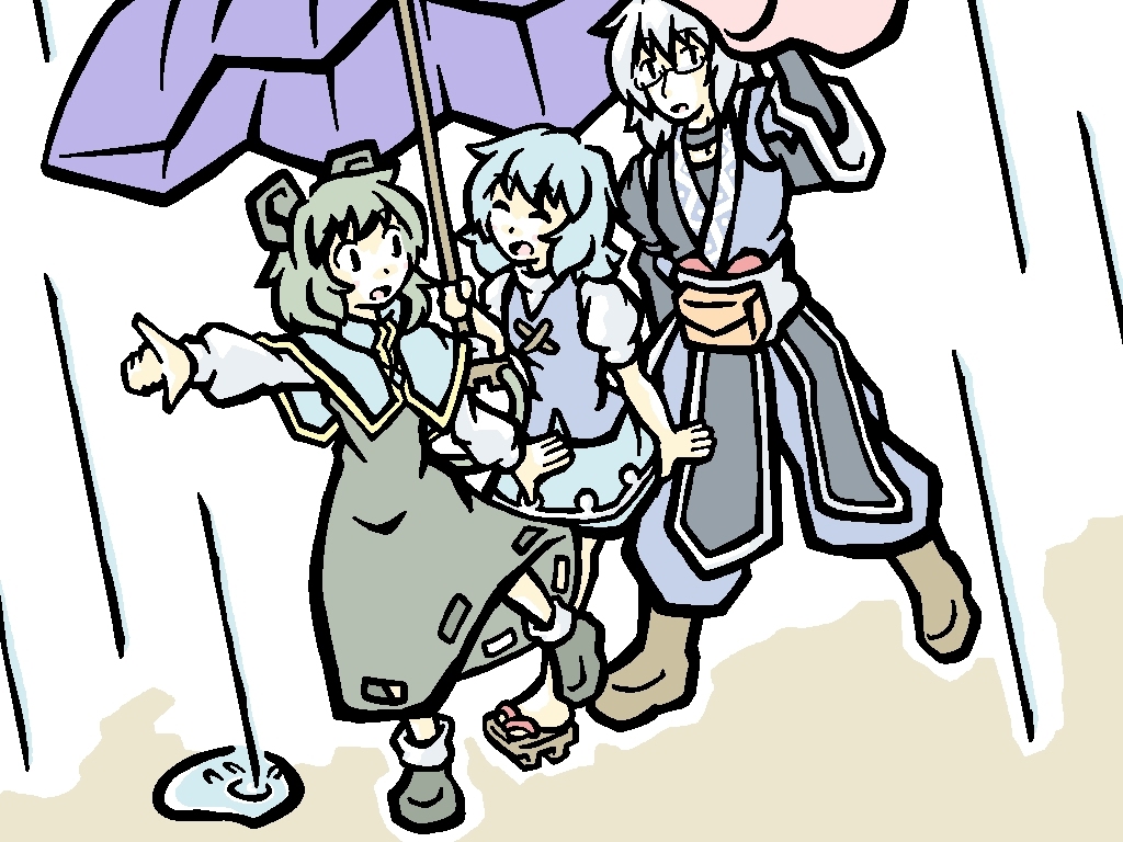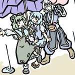 #7年前後前の絵を晒す ナズーリン×多々良小傘×森近霖之助 7年前に投稿した動画のサムネ絵です 『黄金虫は何故集う』nicovideo.jp/watch/sm264778… 夢枕獏さんの小説『陰陽師』シリーズの短編を東方アレンジしたお話でした 若干のミステリ要素があるため、推理コメや考察コメが多くて嬉しかったですね