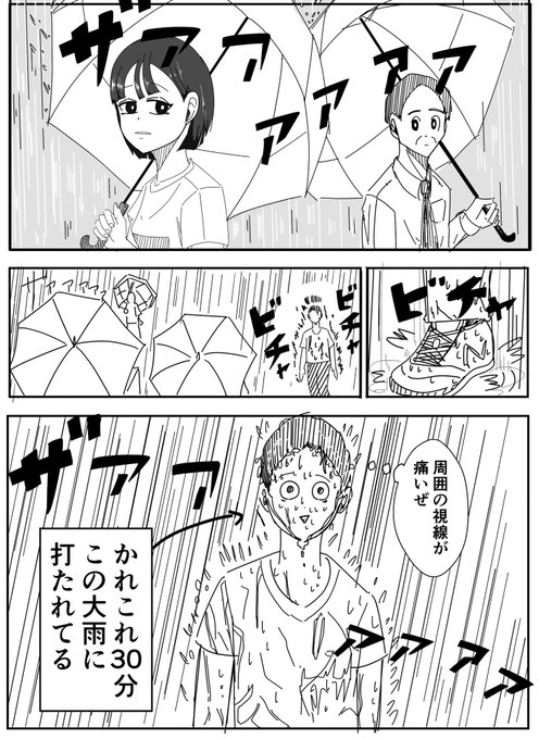 27 199 雨の日の日記漫画描きました 1/2 「強キャラ/もういっそのこと笑ってくれ」 #漫画が読めるハッシュタグ 23/07/04 18:18