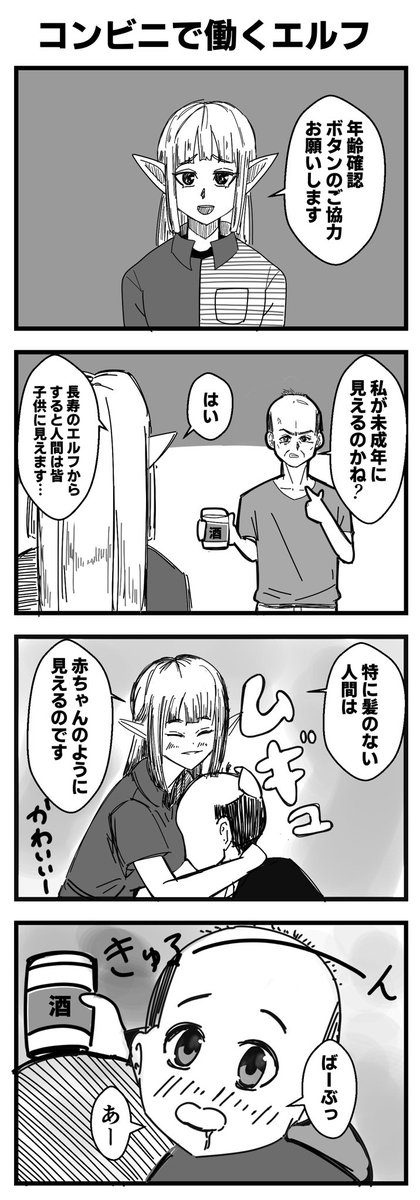 コンビニで働くエルフ #4コマ #漫画が読めるハッシュタグ