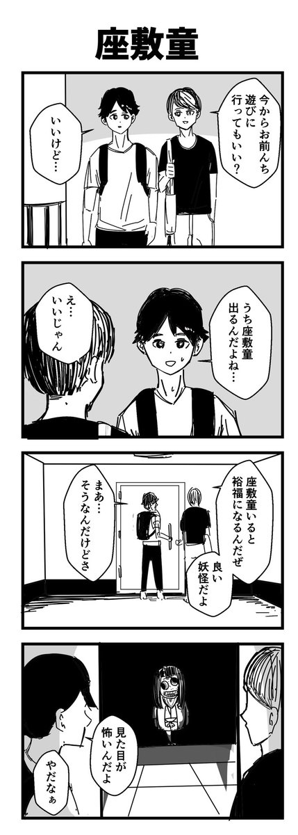 座敷童 #4コマ #漫画が読めるハッシュタグ