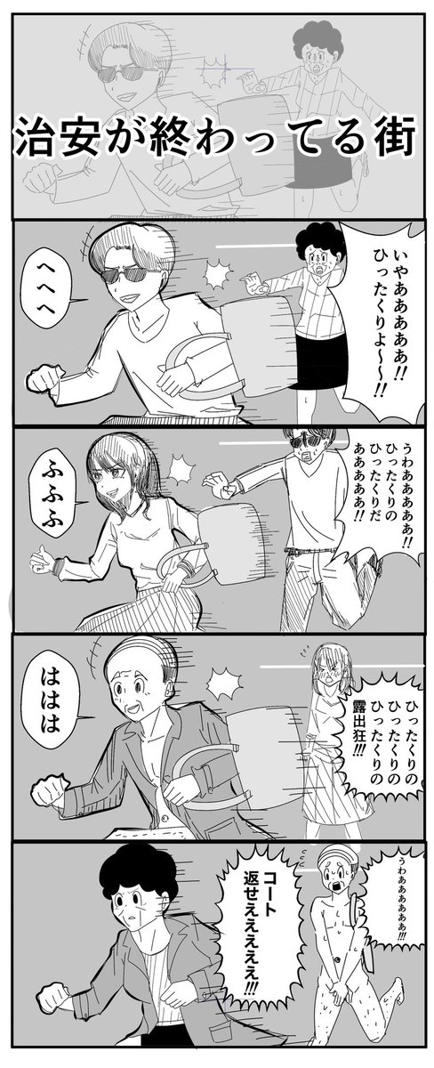 治安が終わってる街 #4コマ #漫画が読めるハッシュタグ