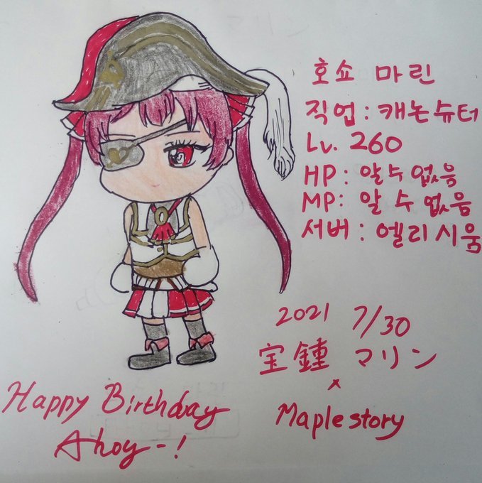 2 5 #宝鐘マリン生誕祭 #マリンのお宝 #マリン航海記 (特別付録) Ahoy~~~!!! 船長をメイプルストーリーのスタイルで描きました!!! お誕生日おめでとう!!! 21/07/30 15:16