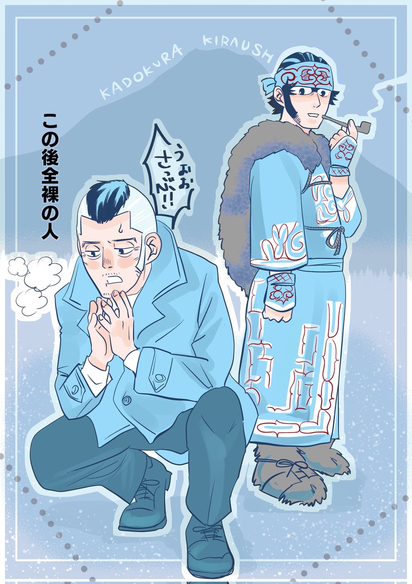 #ゴールデンカムイ版深夜の真剣お絵描き60分一本勝負 【お題】夏の絵、暑中お見舞いなど (ペン入れからなら1時間ぐらい?フライング失礼します) ✳️誰だよ祭りに行くかって言ったの 🦌お前だろ(暑い…)