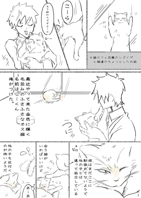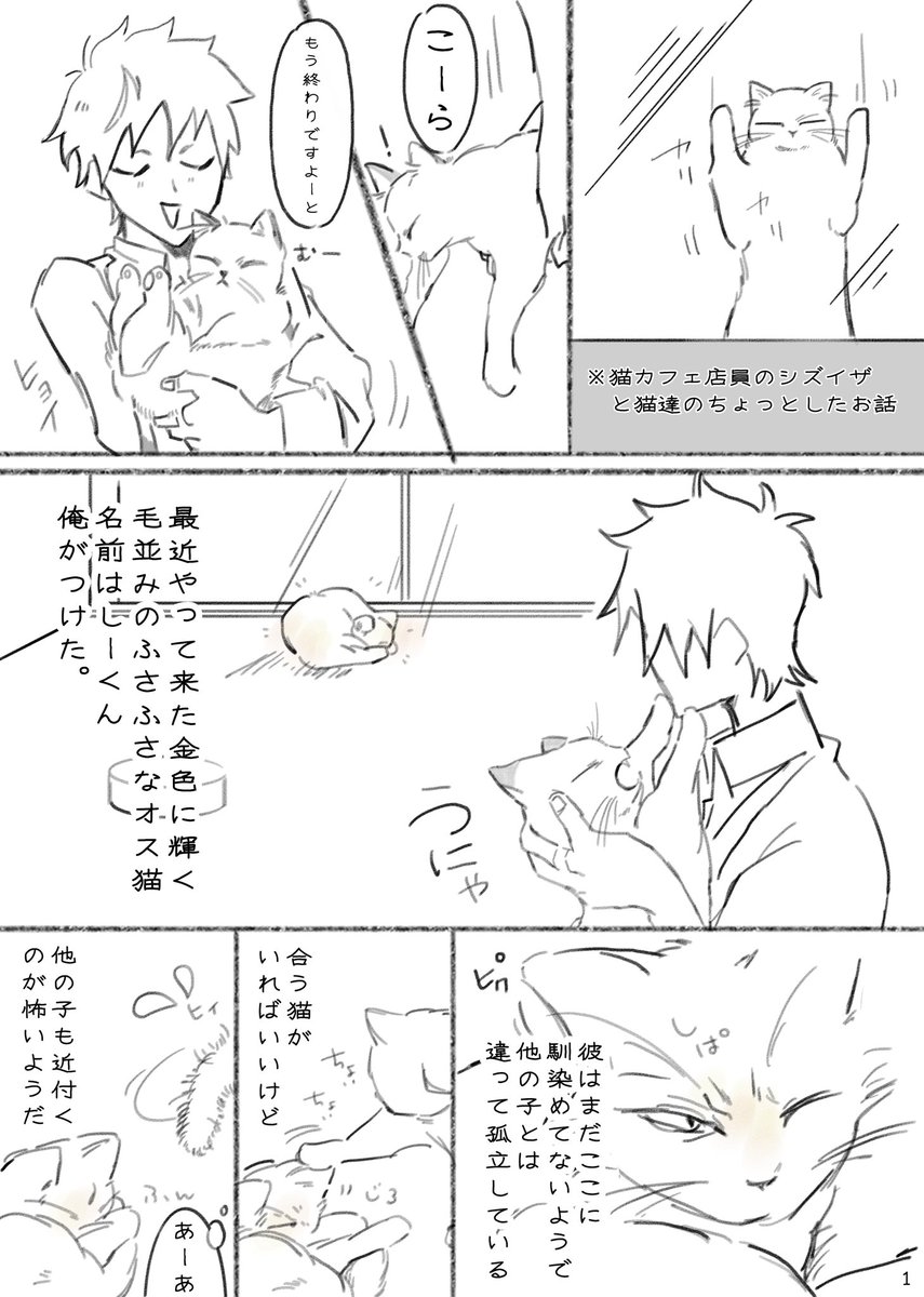 🐈⬛カフェ店員のシズイザと🐈達のちょっとしたお話です。構うと逃げるのに、相手にしないと寄って来る。新セルが経営してる世界線。1/2