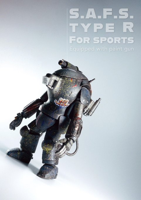 S.A.F.S. type R For sports 争いが無くなった世の中で 不要になったものがスポーツ用に 転用されたという設定です。 手書きのグラフティ風ペイントや 中の人物塗装、鋳造表現、溶接表現などなど 初めてのチャレンジ尽くしでしたが楽しかった! #マシーネン #プラモデル