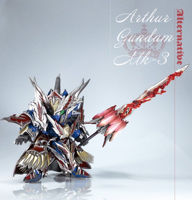 Arthur Gundam Mk-III −Alternative− 完成。 マステ作業が大変でしたが、 終わった後の達成感がすごい! 気になる箇所のみ先をピンピンに。 王冠があまり好きじゃなかったので 武器に合わせつつ、クリアランナーで エフェクトを作成しました。 #ガンプラ #SDGW #SDガンダム
