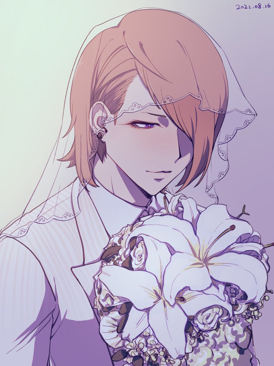24 99 #一日一広場 本当におめでとうだよ!!🥺🥺🥺 (偶然死ん妻ビジュ描いたけど一応関連性はあるよね?!) ベールは捏造なので無しのバージョンも描きました 21/08/16 21:29