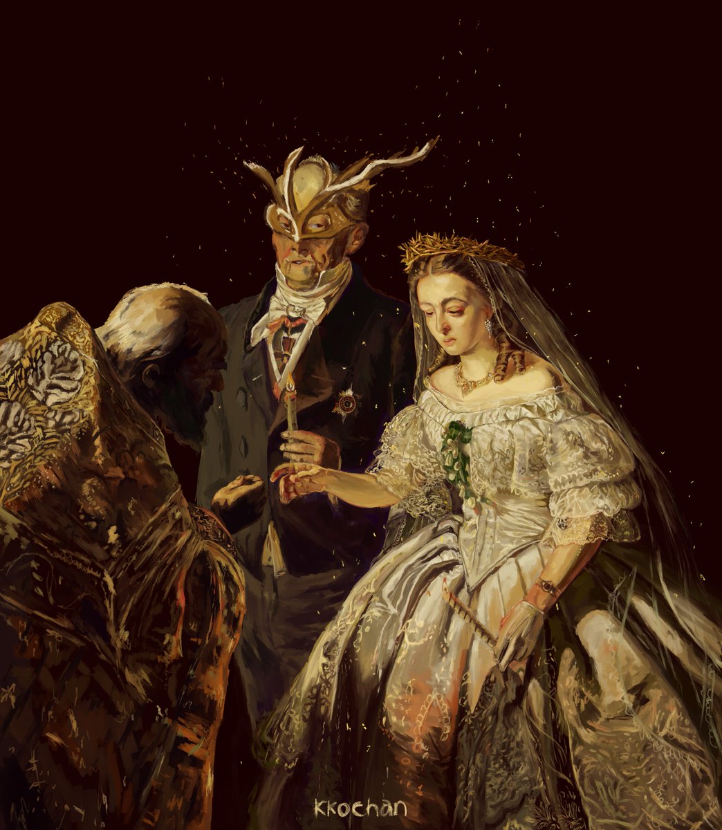 4 6 a recreation of ‘The Arranged Marriage by Vasili Pukirev’ ✿✿✿ ✿✿ ✿ [though it did kind of turned out to be an art study 😅] #artph #art #artistontwitter #artistsofsea 22/11/03 20:45