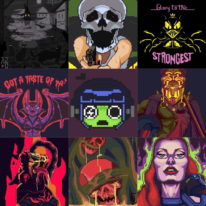 Me he tomado la libertad de recopilar lo más DARKS de #pixelart que he ido haciendo estos meses: --- #artvsartist2020