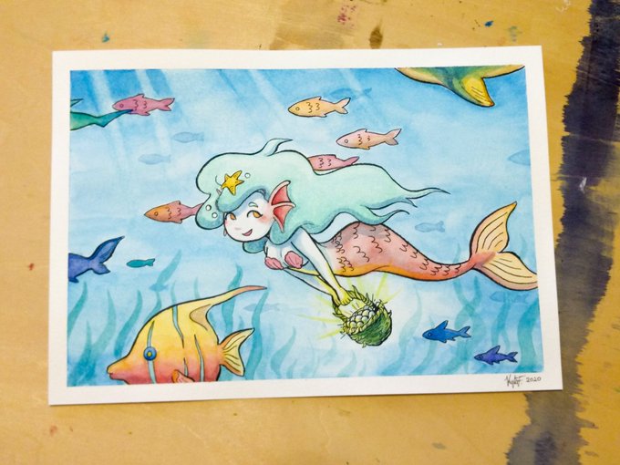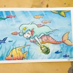 My first painting of 2020! A #mermaid carrying a basket of magic pearls ✨🌟✨ #watercolor #illustration
