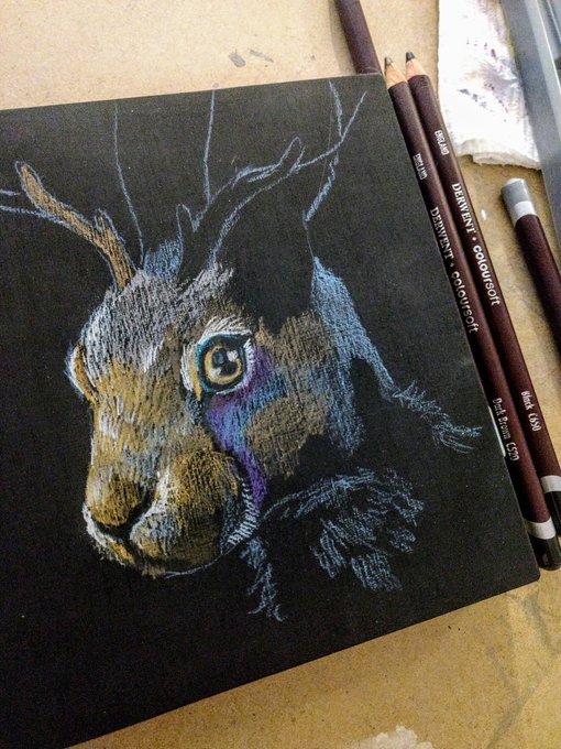 I've always wanted to try colored pencils on black gessoed ground and I'm really having fun with it #MaySketchADay