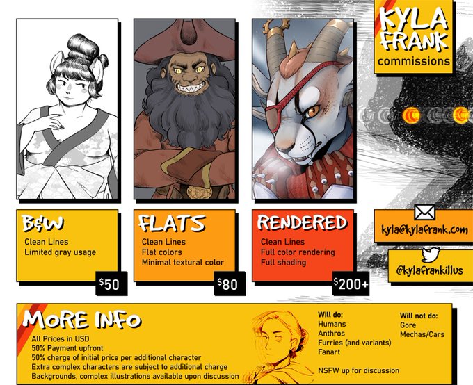 Hi, I'm Kyla and I'm a queer illustrator looking for work! I do book covers, comics, interior illustrations, character design, and concept art. :) portfolio: kylafrank.com 📩 kyla@kylafrank.com #PortfolioDay #illustrator