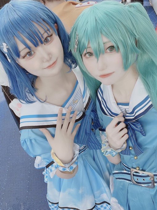 4 36 #prsk_cos 2日間お疲れ様でした〜!! モモミクと遥ちゃんツーショ🥰 このはちゃんずっと一緒にいてくれて本当にありがとう🥰💙 めちゃくちゃ遥ちゃんで隣占領できてほんと最高でした……🫧💙 #コスサミ #コスサミ2022 22/08/07 21:15