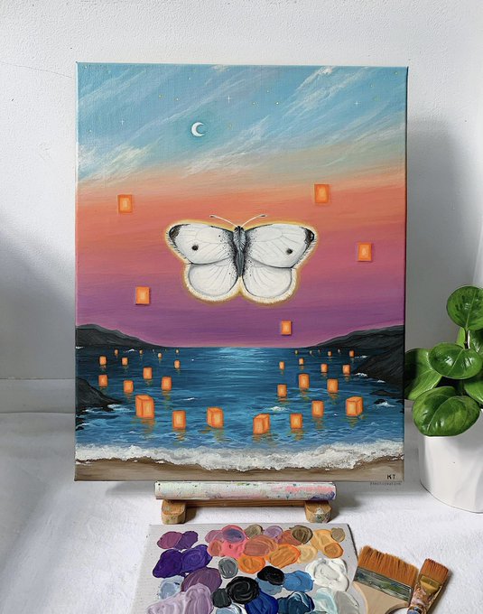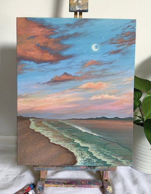 my first painting of 2023 ‘solace’ ☁️🪞🌜
