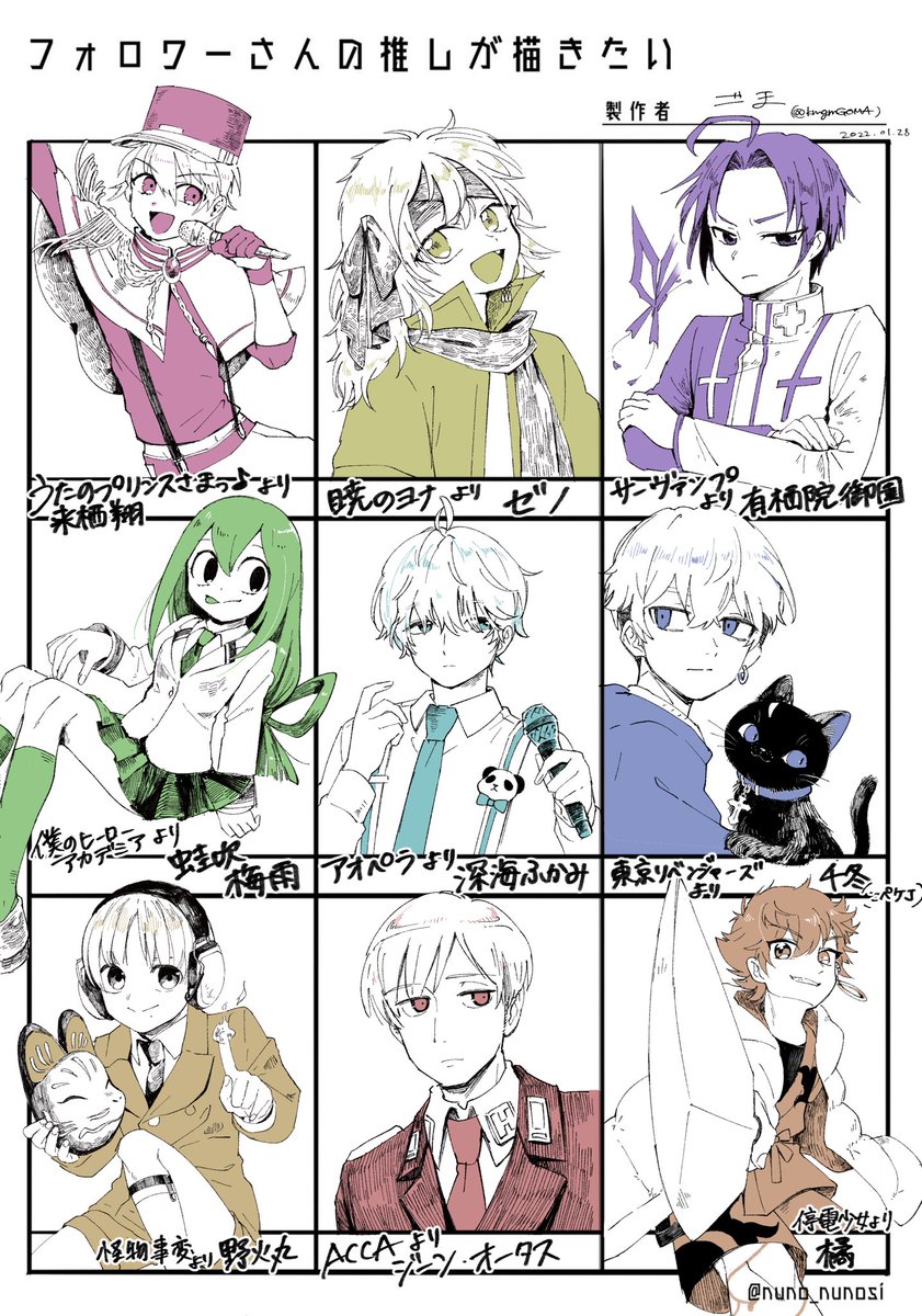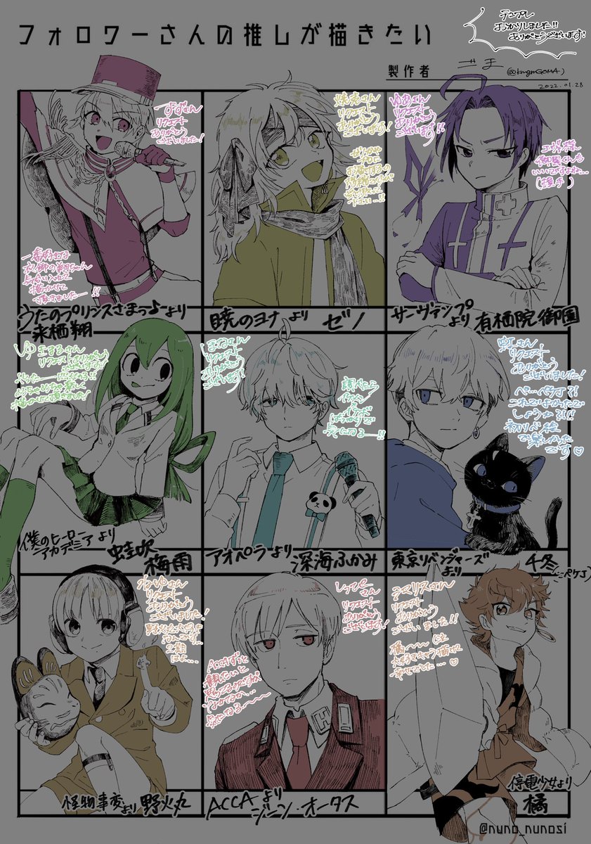 リク下さったフォロワー様へ たいっっっへんお待たせしました😭 二次元キャラ達纏めさせて頂きました。 残りも必ず描き上げますのでお待ち下さい🙏💦💦 リクありがとうございました! 最高に楽しかったです✨ #フォロワーさんの推しが描きたい