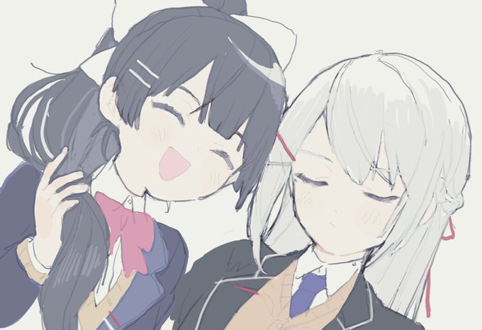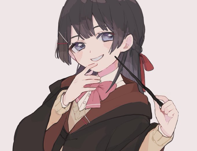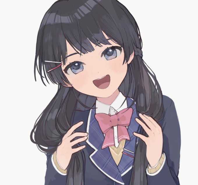 1期生コラボサムネの委員長、なんかいつもとトキメキが違う…いやいつもめちゃくちゃ可愛くて今回もすごく可愛くて、でも何か、何かがわたしを狂わせている……ってずっと眺めてたんだけど気づいた サムネの委員長、後ろ髪を前に垂らしている
