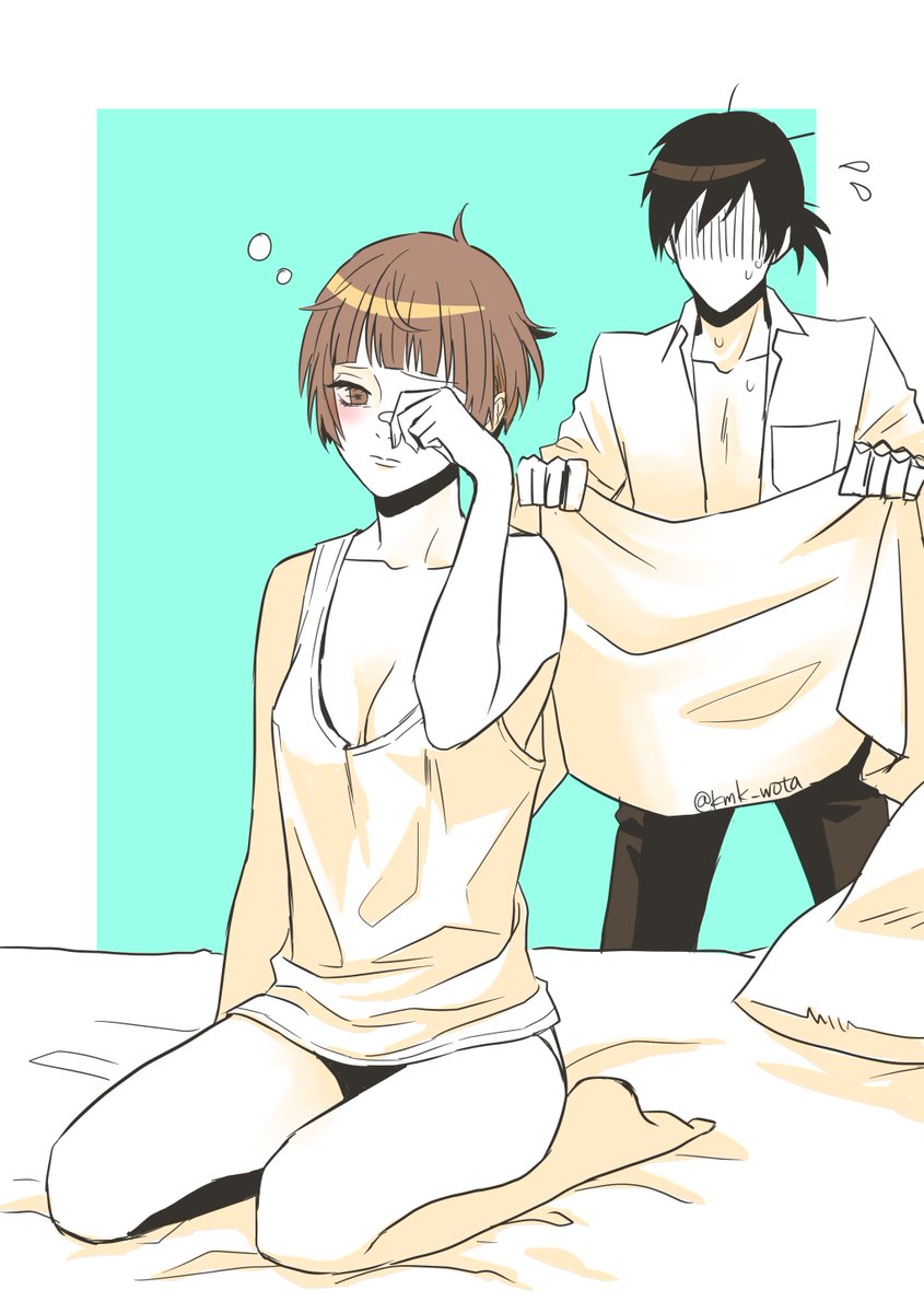 マシュマロより✨ 「ギノさんのタンクトップ着た朱ちゃんの彼シャツ姿その気になったらでいいので描いてもらえませんか?(もしよければポニチカでお願いします)」 リクエストありがとうございました😊