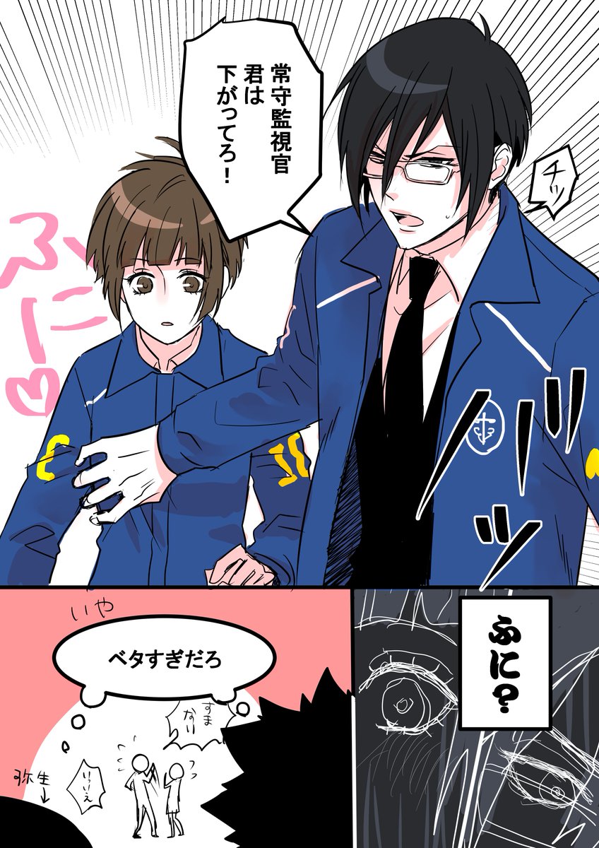 宜「監視官、届け物だ」 霜「……」 朱「み、美佳ちゃ💦これは、その💦」 宜「貴方の無茶ぷりは変わらないな」 朱「宜野座さんの小言こそ変わってないですね!」 霜「イチャつくなら他所でやれ!!!!💢」
