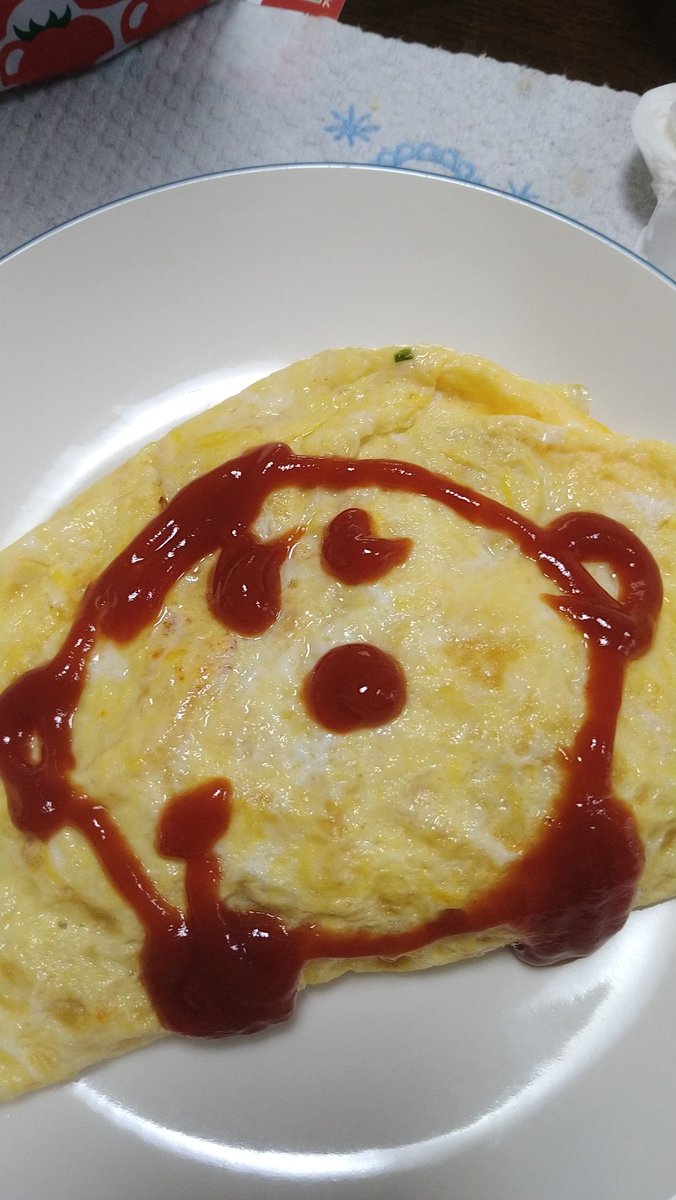 オムライスにカービィ描いてみたら、返り血浴びたようにしか見えなくて😂