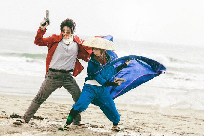 【⚠︎/cos】 朝活おそほーーー🌅 さやりどんと、かいえんたいしてもらってきたよ〜常に🔫で脅されて鉄の重み感じた…笑 衣装は作りました〜!推しに着て貰う幸せすごかったアリガト💕 photo:@take393902