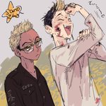 こっちでも失礼します〜!本垢で仲良くしてもらってる超〜可愛い絵を描かれるさのさん(@sa_nm )へ!半くんとキサぴ💖この2人を知ったのがさのさんからなので大変恐縮なのですが調子乗って描きました😳この2人永遠にニコイチでいてほし〜!