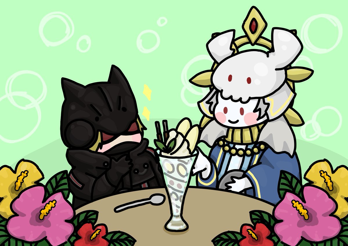 お題:ソル、ヒョウ フリー:バナナ(パフェ)・ハイビスカス 1h+54min このお題は絶対に描かねば…!!と一心不乱に描きました😇 ソルにゃんの特製バナナパフェ、召し上がれ〜✨ #コラボBEドロ #本家BEドロ