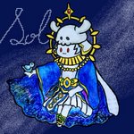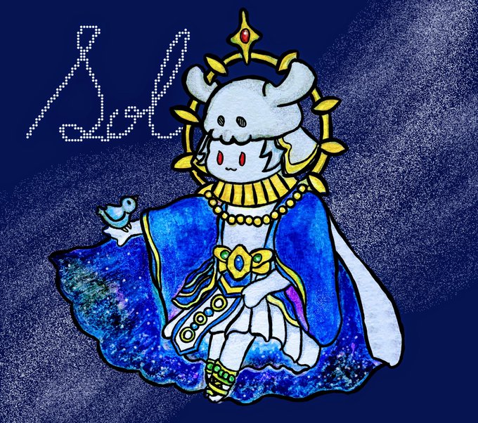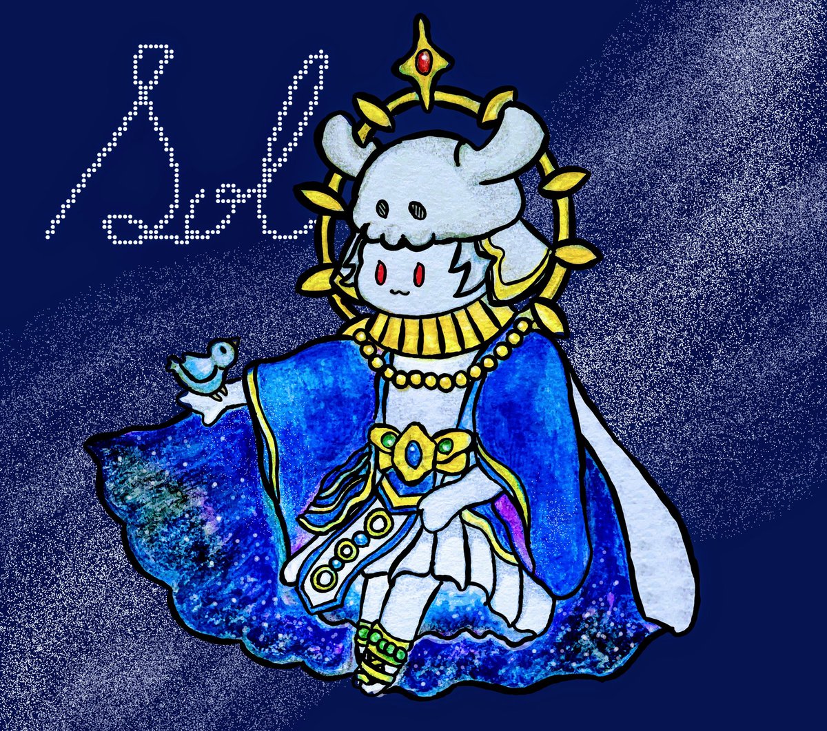 朱眼の賢者ソルにゃんᗦ↞◃ おニューの衣装も可愛いねっ!! 骨ちゃんおかえり!! 来てくれますよーに!!!!!!🌕☀️ (結局装飾はよく分からなかった🥹) #FFBE #FFBEアート
