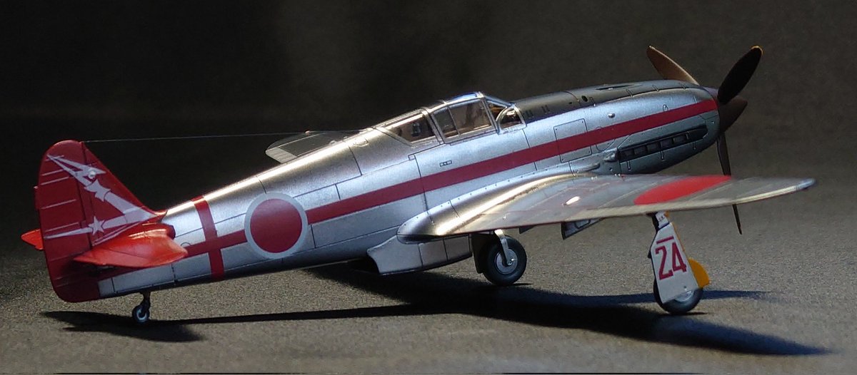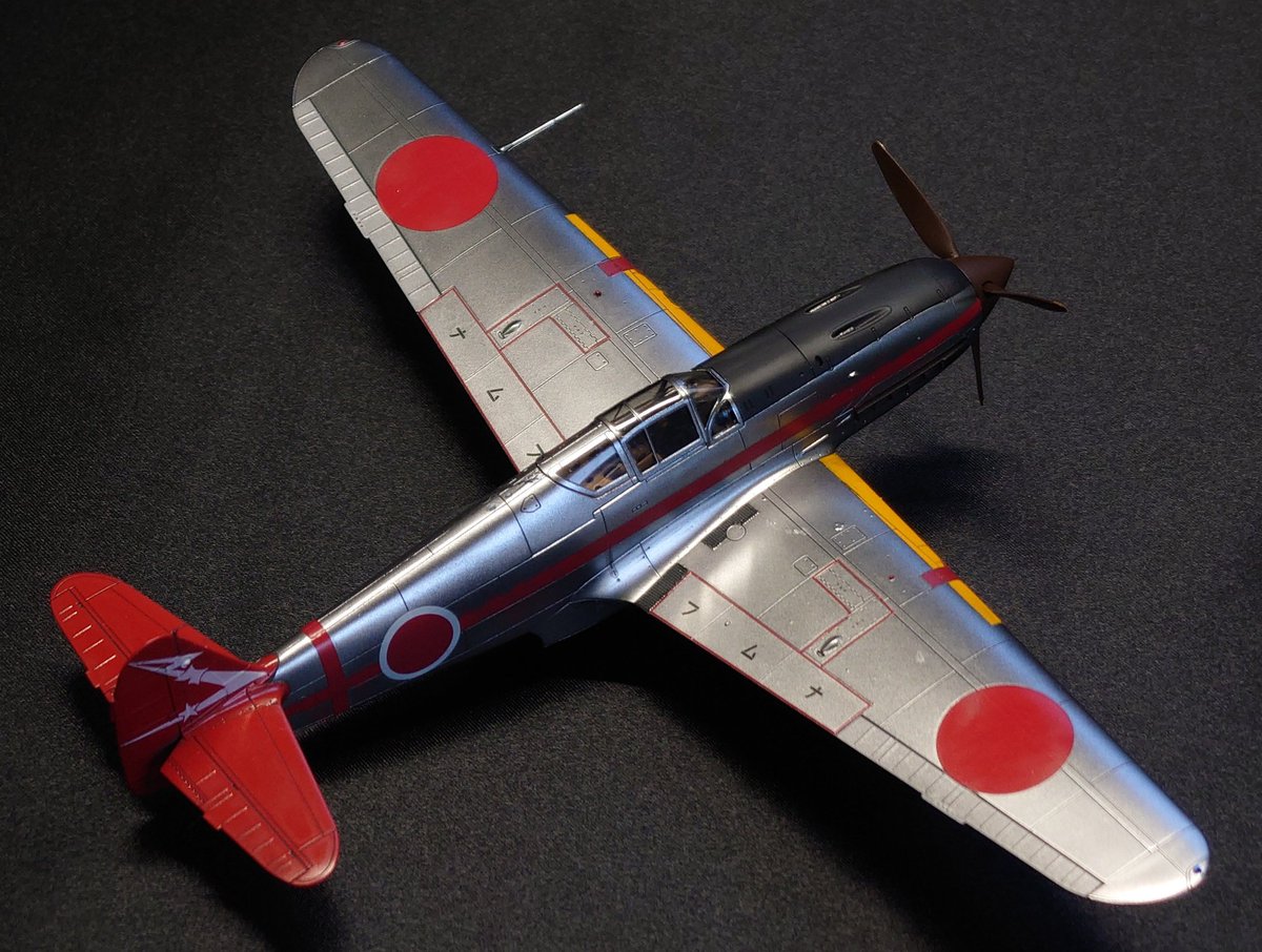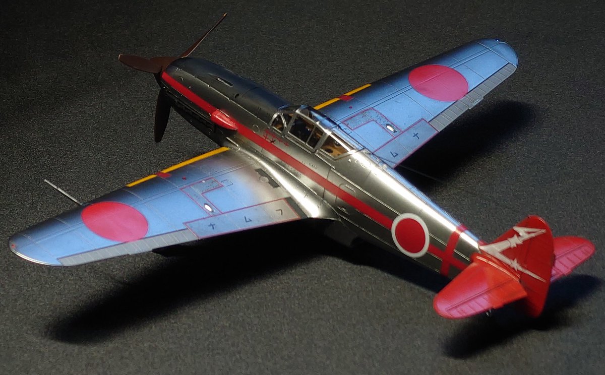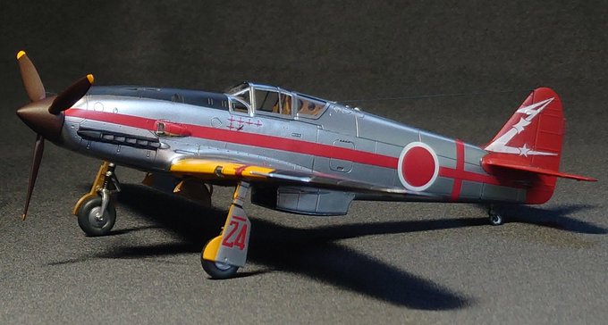 #今月作ったプラモ晒そうぜ 出来ましたですよぉ〜🤗 タミヤ 1/72 川崎 三式戦闘機 飛燕i型丁 なんとか2月製作分に入れられたようです👍😅キラキラボディを維持すべく微量のウエザリングで終えてみました🥴これ、被写体自体が光を反射するので写真撮るのが難しかったです…🤔