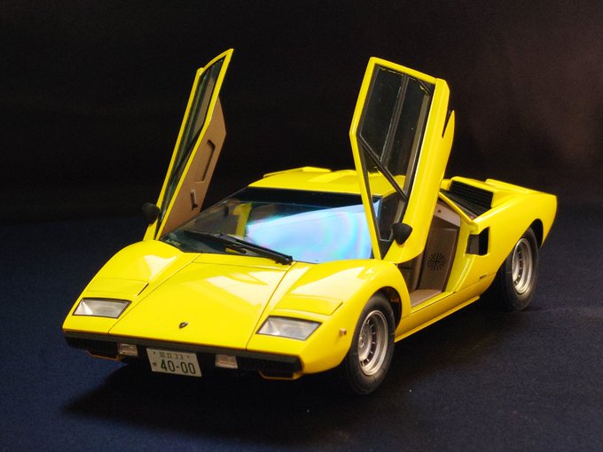 #今月作ったプラモ晒そうぜ 残念ながら…これだけだった…🤔 造るペースがどんどん遅くなっていきます…🥺 (アオシマ 1/24 Lamborghini Countach LP400) (アリイ 1/32 Blue-bird 1200 "1961")