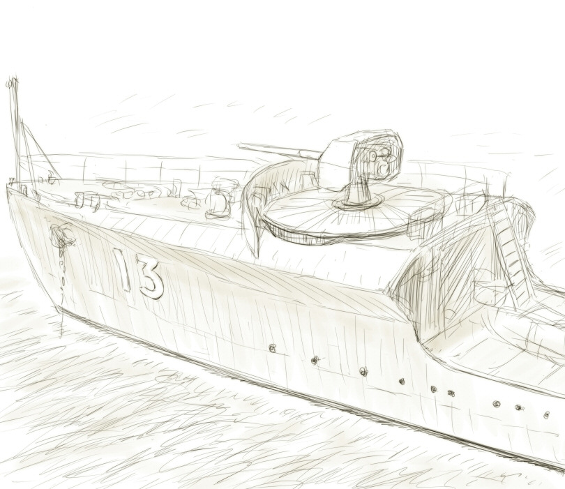 仮眠したらテンション上がってしまったので落書き。 前回描いた若竹の艦橋が好評だったので今度は艦首を描いてみました。