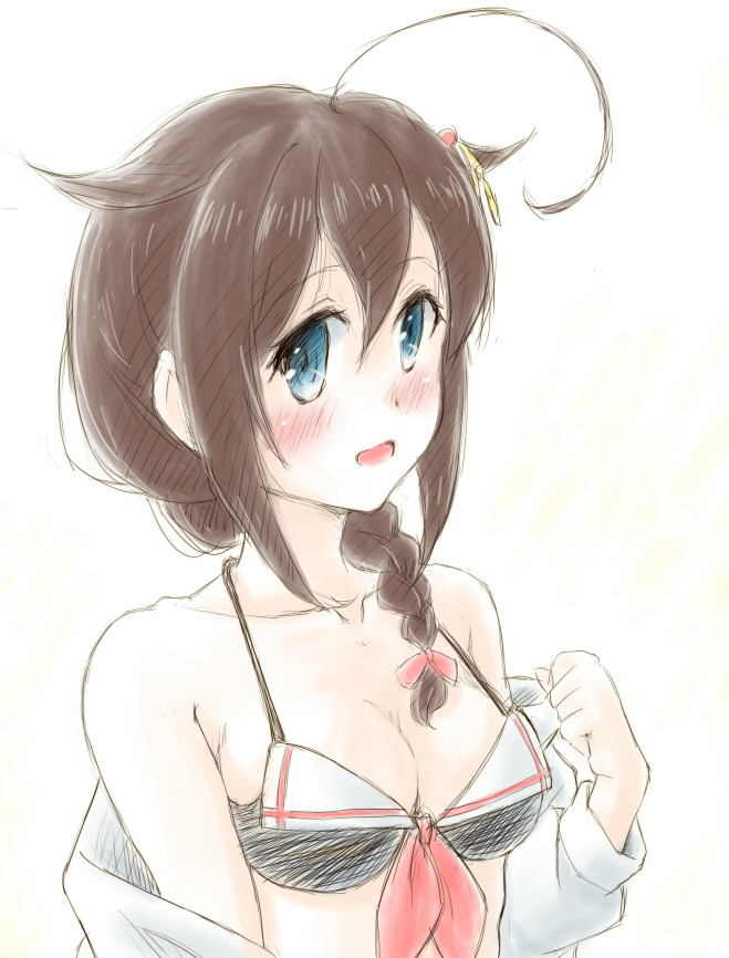 なかなかメンテ終わらないので水着時雨描いてました。もう寝る…