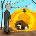 ハロウィンの素敵なFAは凄腕絵師さんたちにお任せするとして、ハロウィン準備中FAを描いてみた♪ 掘ってる途中だったんだけどな… 気に入ったなら良かった ぴのさん捏造(白?グレー?のでっかいふわふわノルウェージャンと聞いて) #bintrollFA #絵1857 #ぴくてっと 後ろ姿でごめんなさい…